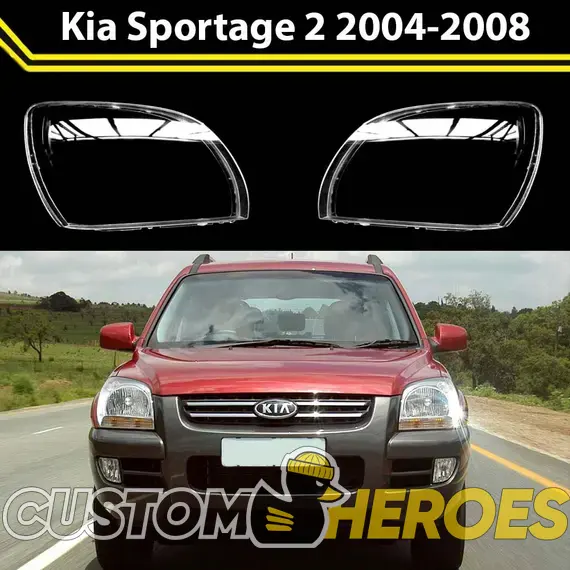Высококачественные стекла фар из оптического поликарбоната с защитным УФ-лаком идеально подходят для замены оригинальных стекол фар на Kia Sportage 2004-2008 2 поколение