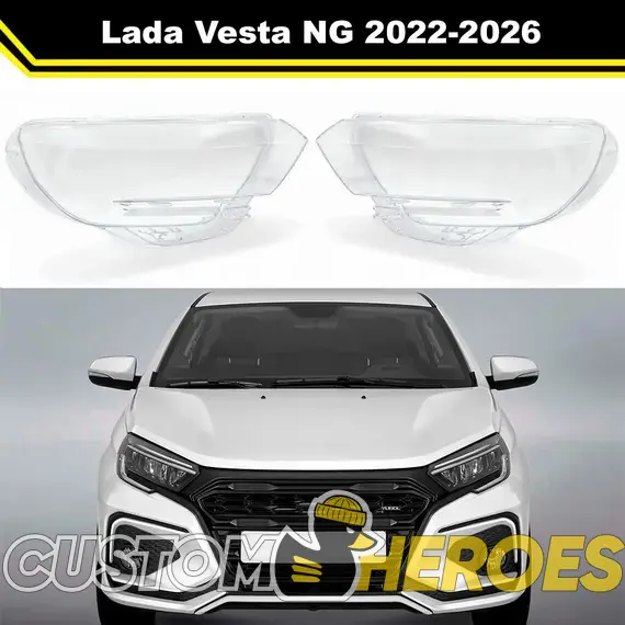 Высококачественные стекла фар из оптического поликарбоната с защитным УФ-лаком идеально подходят для замены оригинальных стекол фар на Lada (ВАЗ) Vesta (Веста) 2022-2025 1 поколение [рестайлинг] NG