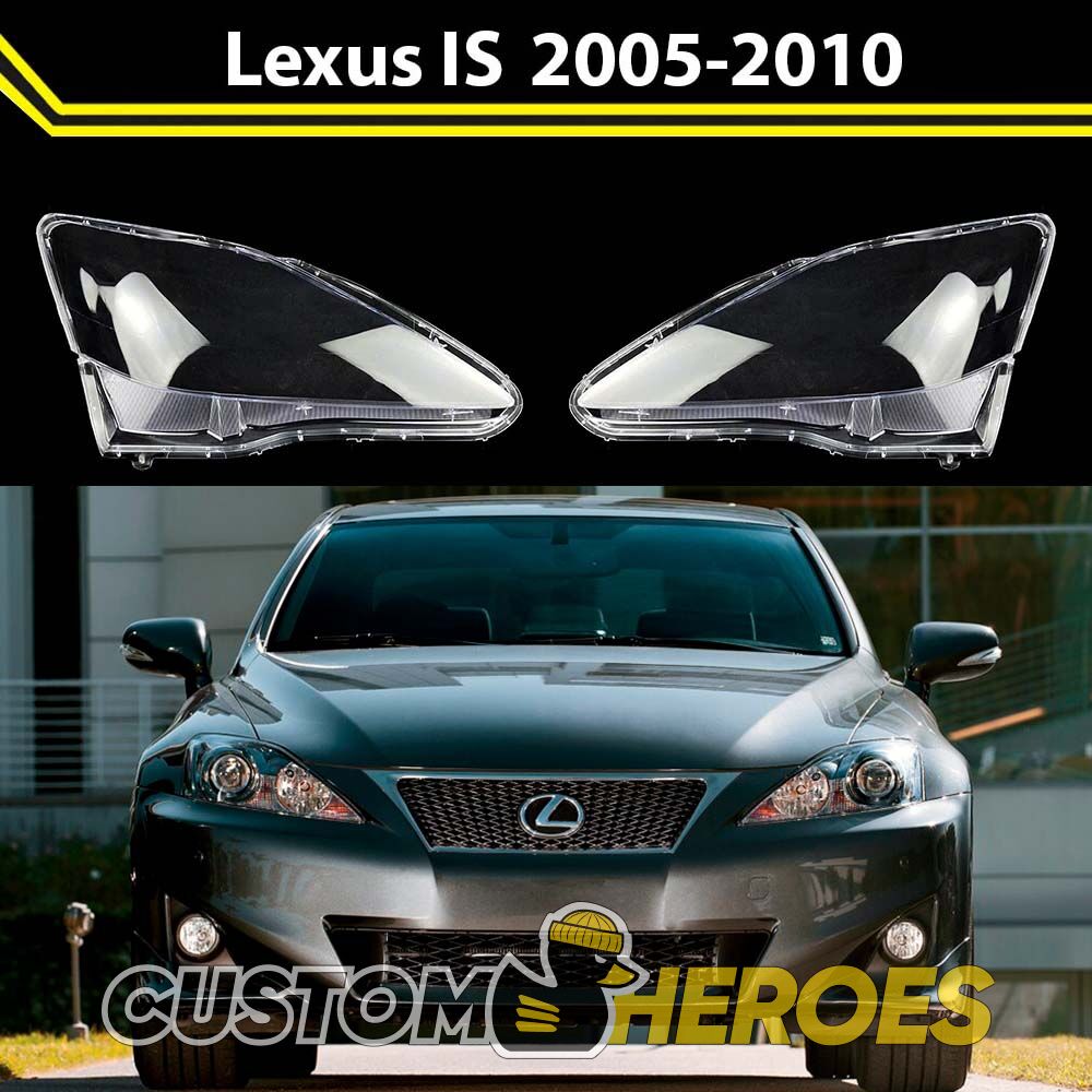 Высококачественные стекла фар из оптического поликарбоната с защитным УФ-лаком идеально подходят для замены оригинальных стекол фар на Lexus IS 2005-2010 XE20