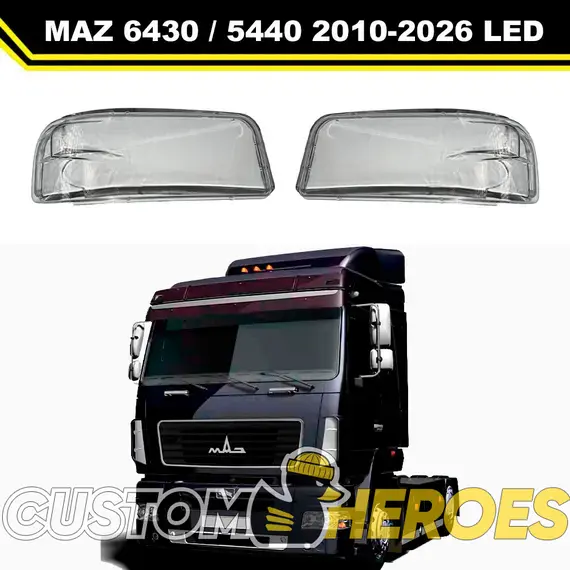 Высококачественные стекла фар из оптического поликарбоната с защитным УФ-лаком идеально подходят для замены оригинальных стекол фар на МАЗ 5440 2010-2025 1 поколение [рестайлинг]