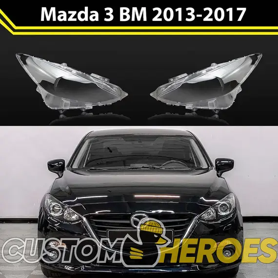 Высококачественные стекла фар из оптического поликарбоната с защитным УФ-лаком идеально подходят для замены оригинальных стекол фар на Mazda 3 2013-2017 BM