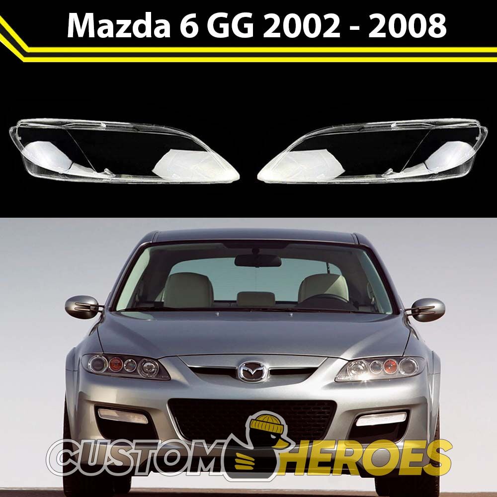 Высококачественные стекла фар из оптического поликарбоната с защитным УФ-лаком идеально подходят для замены оригинальных стекол фар на Mazda 6 2002-2008 GG