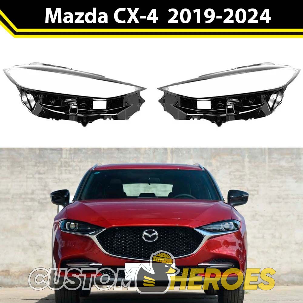 Высококачественные стекла фар из оптического поликарбоната с защитным УФ-лаком идеально подходят для замены оригинальных стекол фар на Mazda CX-4 2019-2024 1 поколение [рестайлинг]