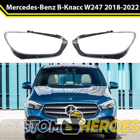 Высококачественные стекла фар из оптического поликарбоната с защитным УФ-лаком идеально подходят для замены оригинальных стекол фар на Mercedes-Benz B-Class 2018-2022 W247