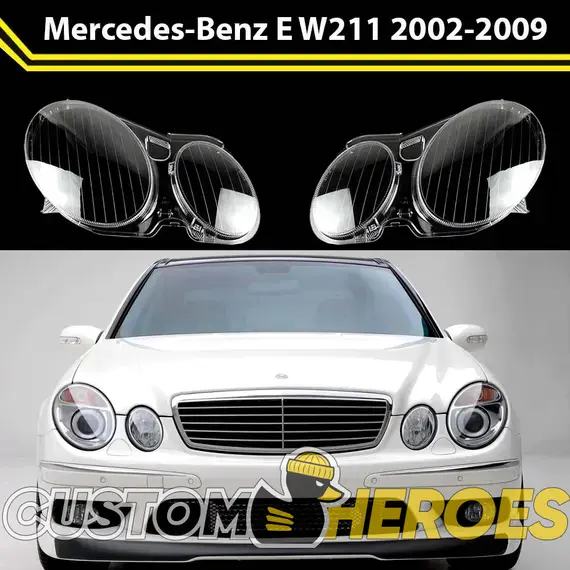 Высококачественные стекла фар из оптического поликарбоната с защитным УФ-лаком идеально подходят для замены оригинальных стекол фар на Mercedes-Benz E-Class 2002-2009 W211/S211