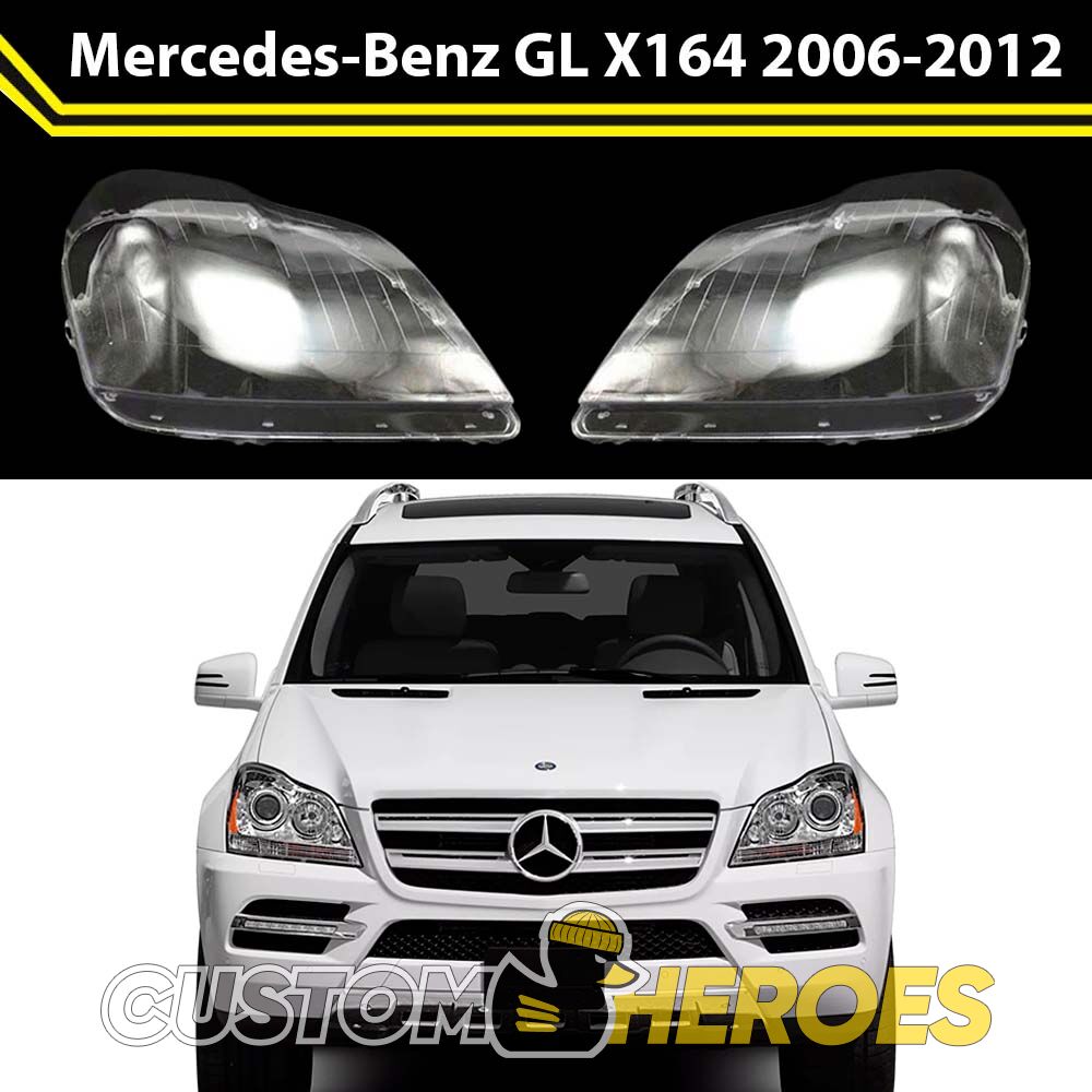 Высококачественные стекла фар из оптического поликарбоната с защитным УФ-лаком идеально подходят для замены оригинальных стекол фар на Mercedes-Benz GL-Class 2006-2012 X164