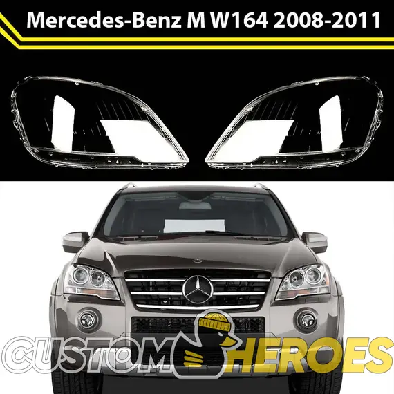 Высококачественные стекла фар из оптического поликарбоната с защитным УФ-лаком идеально подходят для замены оригинальных стекол фар на Mercedes-Benz M-Class 2008-2011 W164 [рестайлинг]