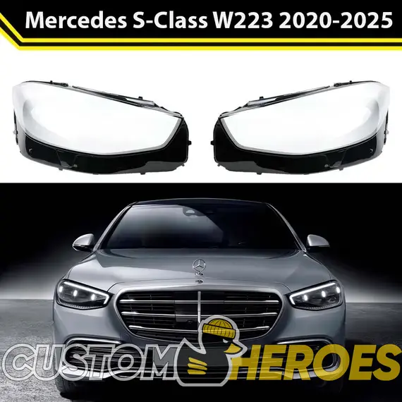 Высококачественные стекла фар из оптического поликарбоната с защитным УФ-лаком идеально подходят для замены оригинальных стекол фар на Mercedes-Benz S-Class 2020-2025 W223