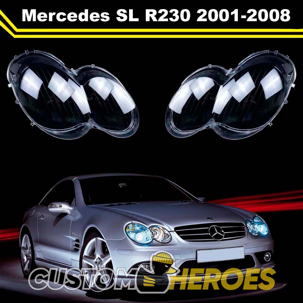 Высококачественные стекла фар из оптического поликарбоната с защитным УФ-лаком идеально подходят для замены оригинальных стекол фар на Mercedes-Benz SL-Class 2001-2008 R230