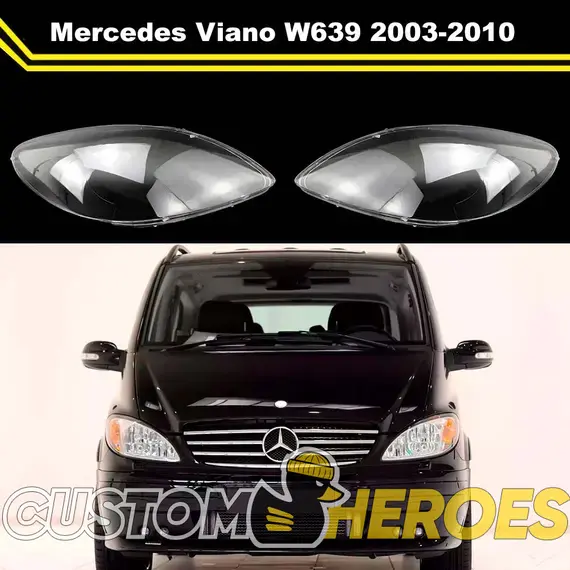 Высококачественные стекла фар из оптического поликарбоната с защитным УФ-лаком идеально подходят для замены оригинальных стекол фар на Mercedes-Benz Viano 2003-2010 W639