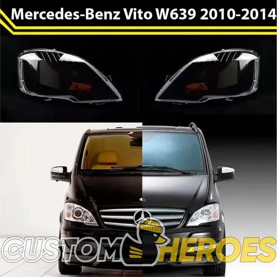 Высококачественные стекла фар из оптического поликарбоната с защитным УФ-лаком идеально подходят для замены оригинальных стекол фар на Mercedes-Benz Vito 2010-2014 W639 [рестайлинг]