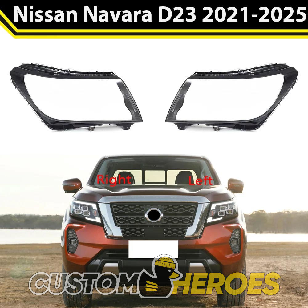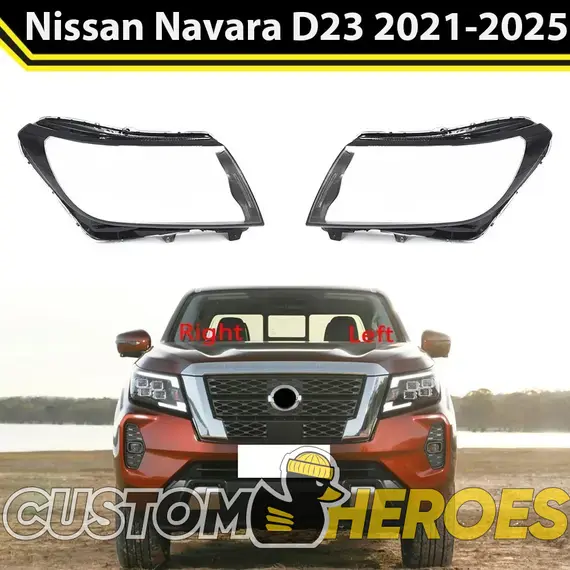 Высококачественные стекла фар из оптического поликарбоната с защитным УФ-лаком идеально подходят для замены оригинальных стекол фар на Nissan Navara 2023-2025 D23 [2-й рестайлинг]