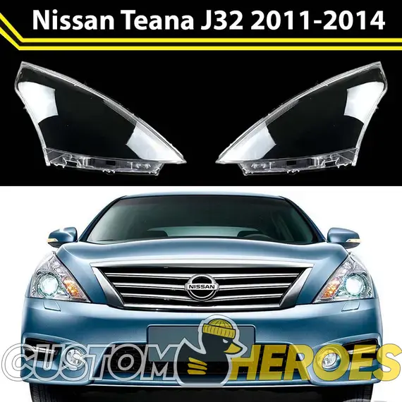 Высококачественные стекла фар из оптического поликарбоната с защитным УФ-лаком идеально подходят для замены оригинальных стекол фар на Nissan Teana 2011-2014 J32 [рестайлинг]