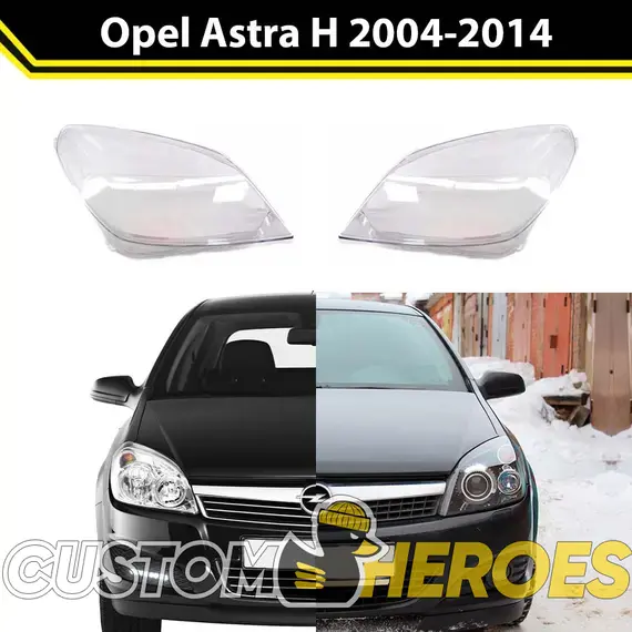 Высококачественные стекла фар из оптического поликарбоната с защитным УФ-лаком идеально подходят для замены оригинальных стекол фар на Opel Astra 2004-2014 H