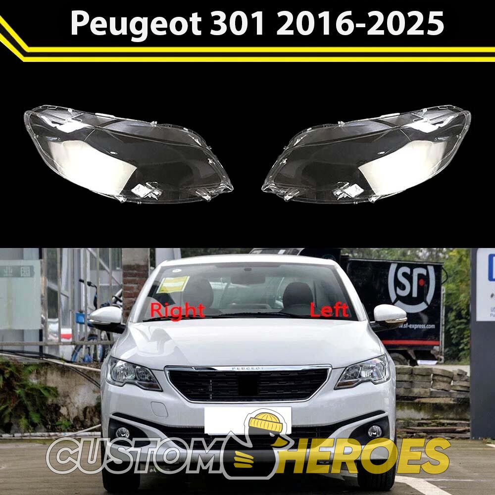 Высококачественные стекла фар из оптического поликарбоната с защитным УФ-лаком идеально подходят для замены оригинальных стекол фар на Peugeot 301 2016-2024 1 поколение [рестайлинг]