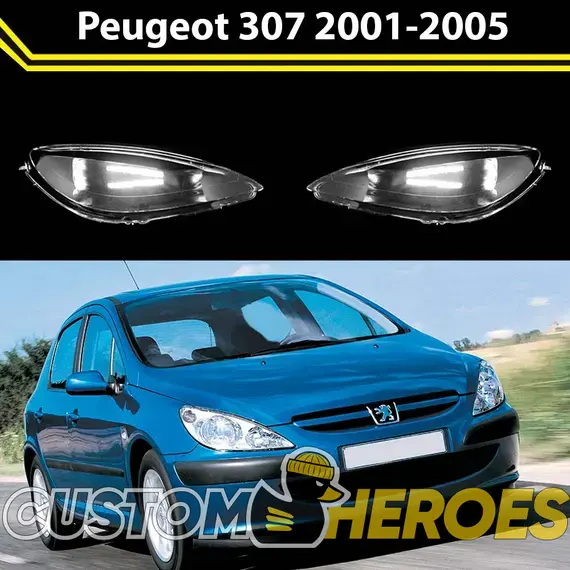 Высококачественные стекла фар из оптического поликарбоната с защитным УФ-лаком идеально подходят для замены оригинальных стекол фар на Peugeot 307 2001-2005 1 поколение