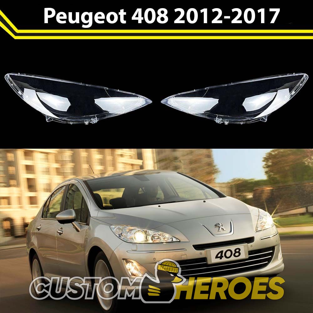 Высококачественные стекла фар из оптического поликарбоната с защитным УФ-лаком идеально подходят для замены оригинальных стекол фар на Peugeot 408 2012-2017 1 поколение