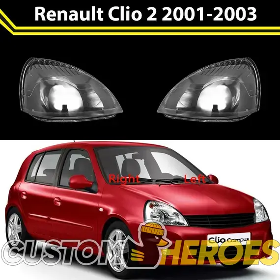 Высококачественные стекла фар из оптического поликарбоната с защитным УФ-лаком идеально подходят для замены оригинальных стекол фар на Renault Clio 2001-2003 2 поколение [рестайлинг]