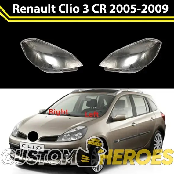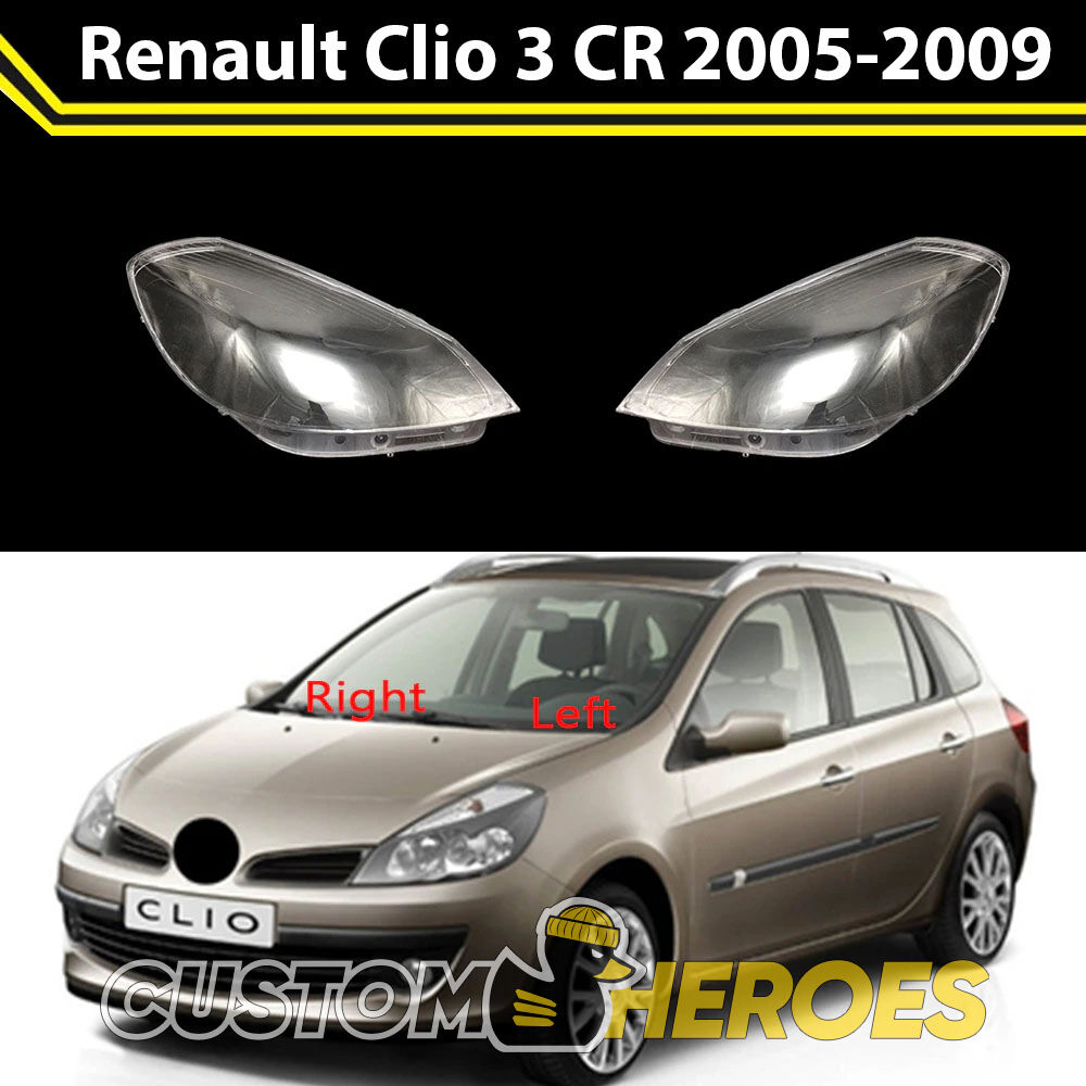 Высококачественные стекла фар из оптического поликарбоната с защитным УФ-лаком идеально подходят для замены оригинальных стекол фар на Renault Clio 2005-2009 3 поколение
