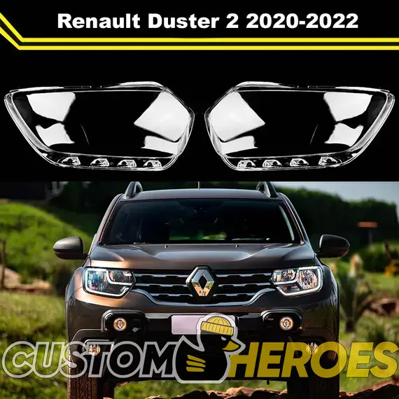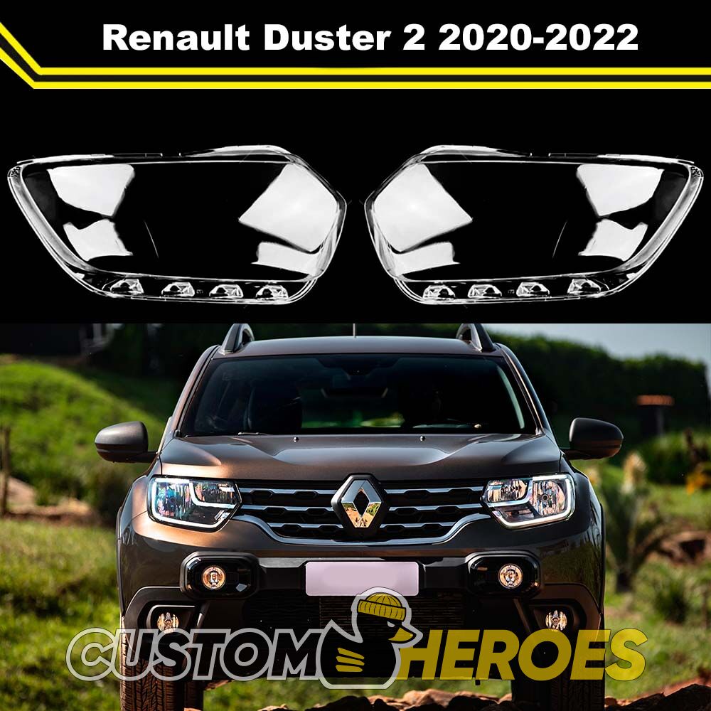 Высококачественные стекла фар из оптического поликарбоната с защитным УФ-лаком идеально подходят для замены оригинальных стекол фар на Renault Duster 2020-2022 2 поколение