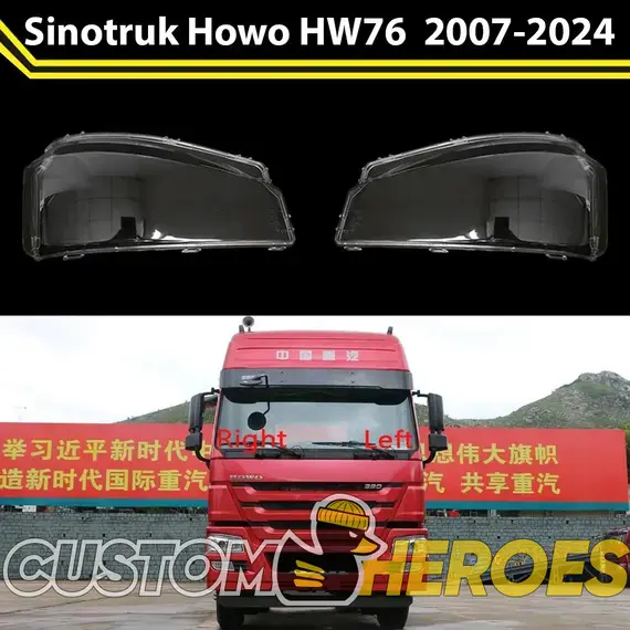 Высококачественные стекла фар из оптического поликарбоната с защитным УФ-лаком идеально подходят для замены оригинальных стекол фар на Sinotruk Howo HW76 2007-2024