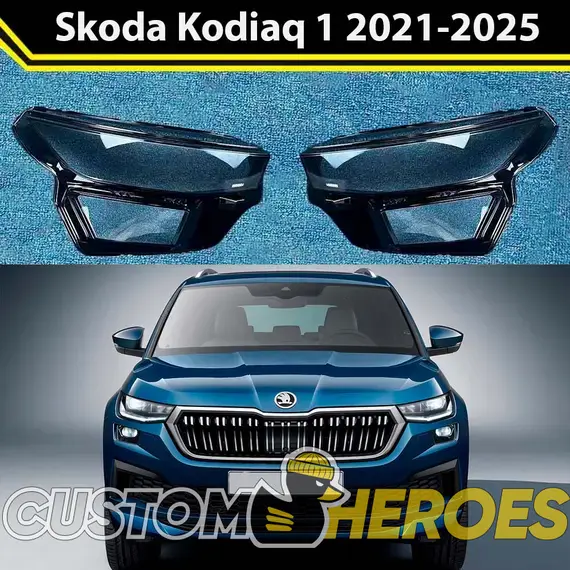 Высококачественные стекла фар из оптического поликарбоната с защитным УФ-лаком идеально подходят для замены оригинальных стекол фар на Skoda Kodiaq 2021-2025 1 поколение [рестайлинг]