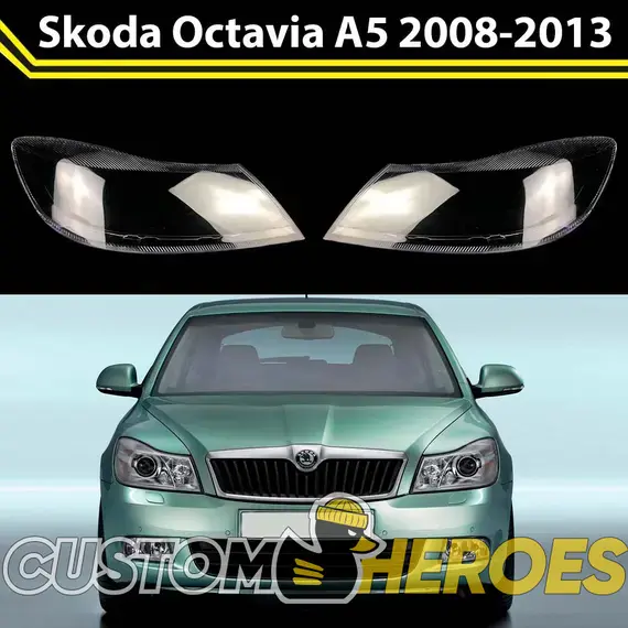 Высококачественные стекла фар из оптического поликарбоната с защитным УФ-лаком идеально подходят для замены оригинальных стекол фар на Skoda Octavia 2008-2013 A5 2 поколение [рестайлинг]