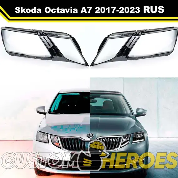 Высококачественные стекла фар из оптического поликарбоната с защитным УФ-лаком идеально подходят для замены оригинальных стекол фар на Skoda Octavia 2017-2023 A7 3 поколение [рестайлинг]