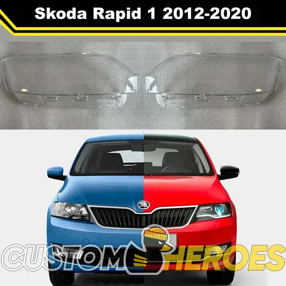 Высококачественные стекла фар из оптического поликарбоната с защитным УФ-лаком идеально подходят для замены оригинальных стекол фар на Skoda Rapid 2012-2020 1 поколение