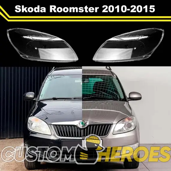 Высококачественные стекла фар из оптического поликарбоната с защитным УФ-лаком идеально подходят для замены оригинальных стекол фар на Skoda Roomster 2010-2015 1 поколение [рестайлинг]