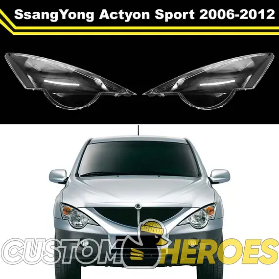 Высококачественные стекла фар из оптического поликарбоната с защитным УФ-лаком идеально подходят для замены оригинальных стекол фар на Ssang Yong Actyon Sport 2006-2012 1 поколение