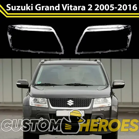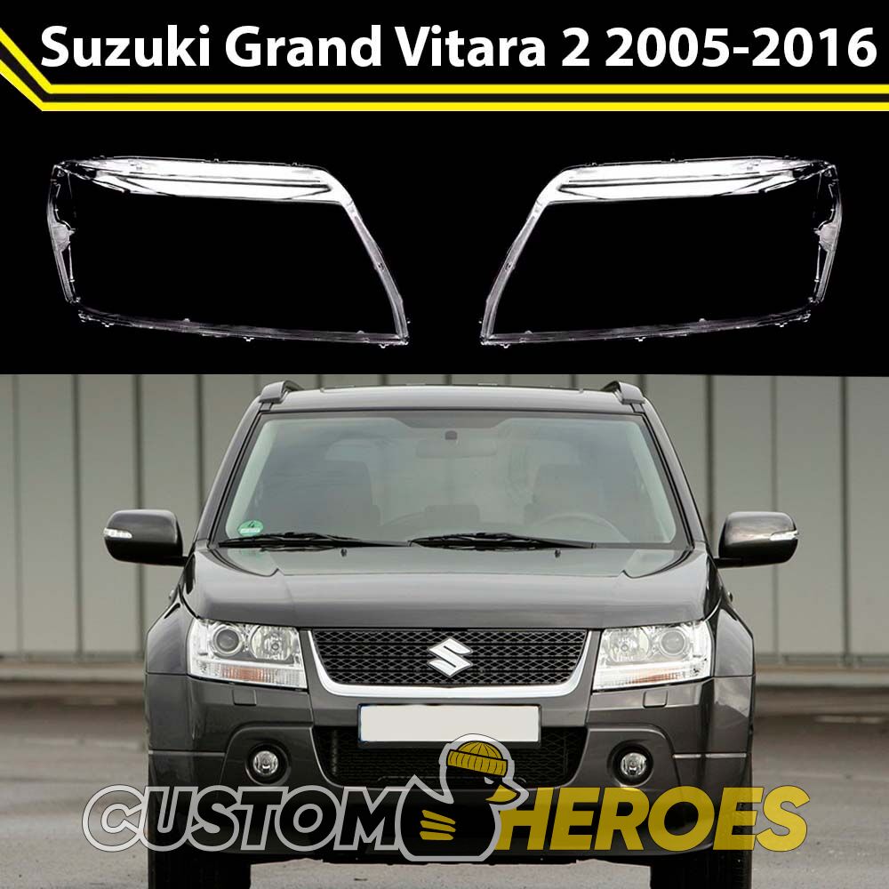 Высококачественные стекла фар из оптического поликарбоната с защитным УФ-лаком идеально подходят для замены оригинальных стекол фар на Suzuki Grand Vitara 2005-2016 2 поколение
