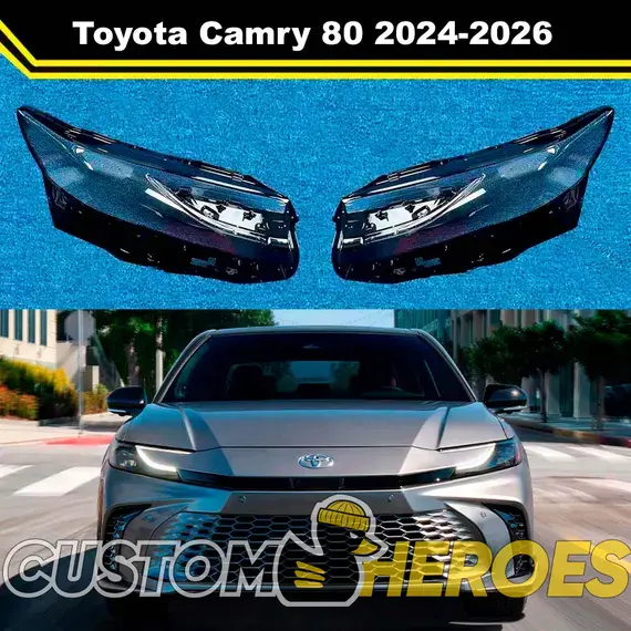 Высококачественные стекла фар из оптического поликарбоната с защитным УФ-лаком идеально подходят для замены оригинальных стекол фар на Toyota Camry 2024-2025 XV80