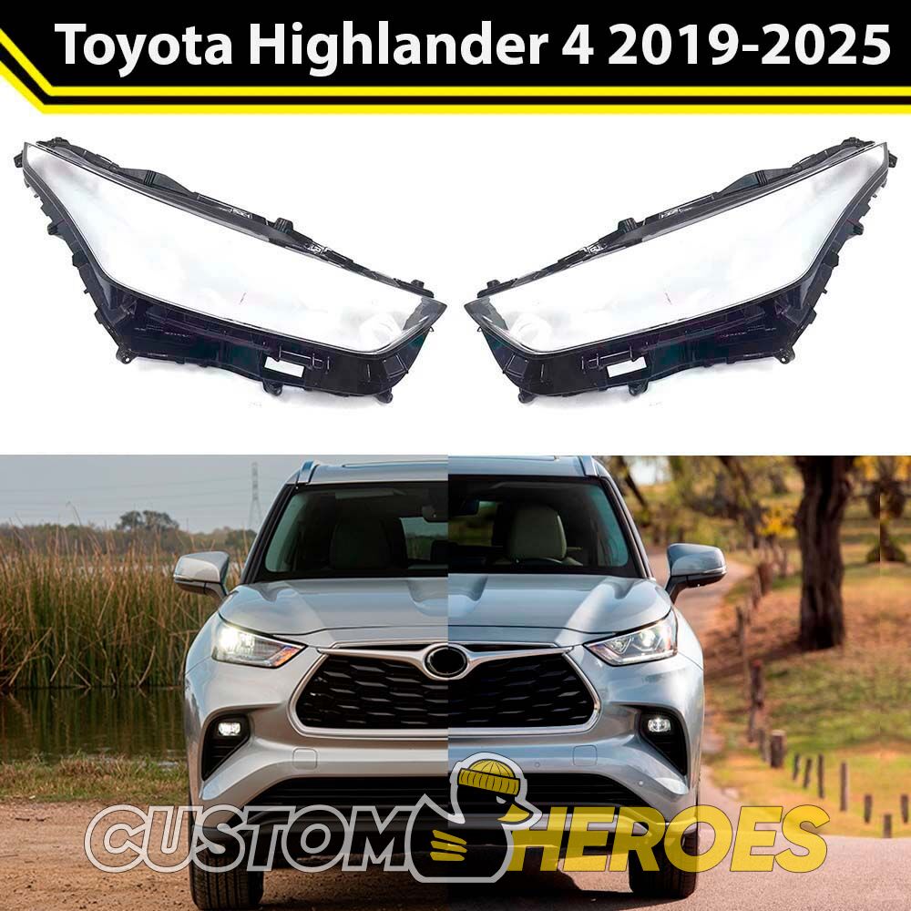 Высококачественные стекла фар из оптического поликарбоната с защитным УФ-лаком идеально подходят для замены оригинальных стекол фар на Toyota Highlander 2019-2025 U70 4 поколение