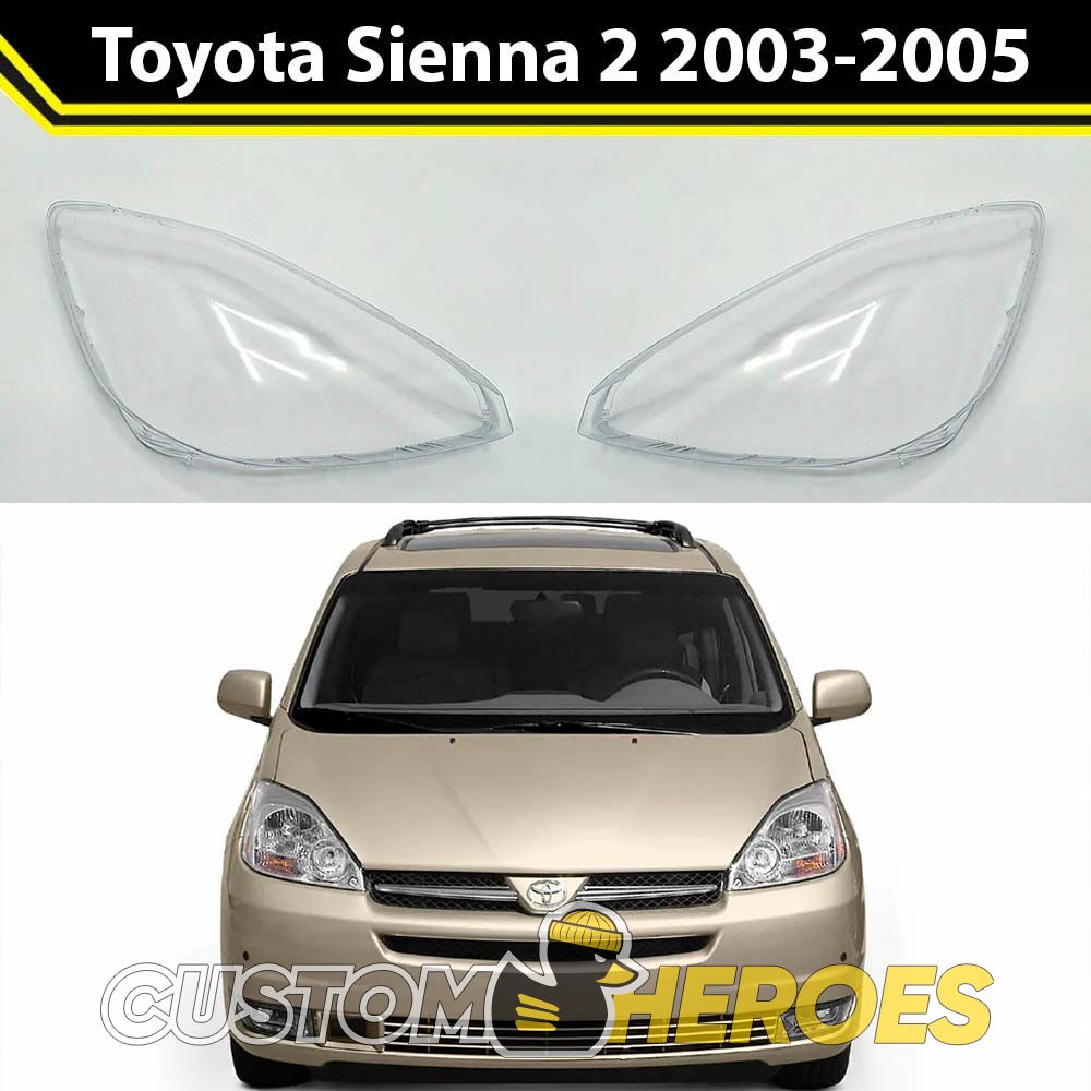 Высококачественные стекла фар из оптического поликарбоната с защитным УФ-лаком идеально подходят для замены оригинальных стекол фар на Toyota Sienna 2003-2005 2 поколение