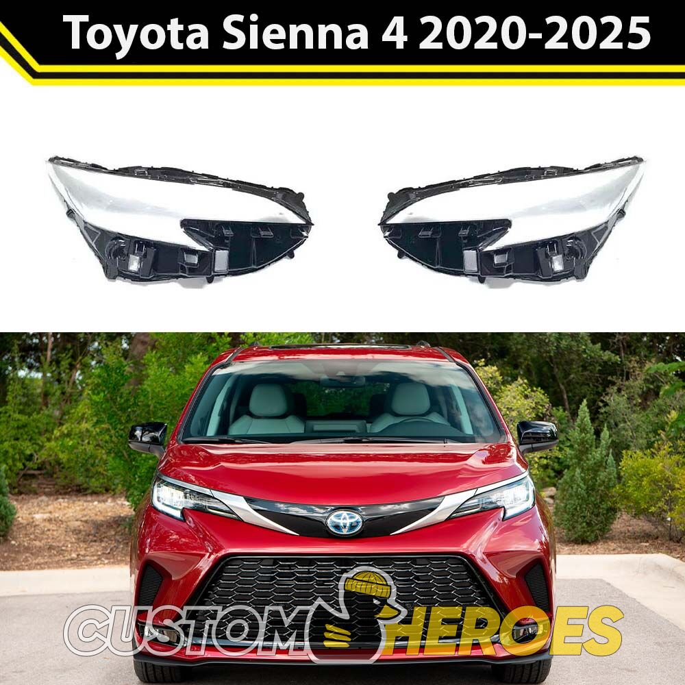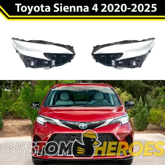 Высококачественные стекла фар из оптического поликарбоната с защитным УФ-лаком идеально подходят для замены оригинальных стекол фар на Toyota Sienna 2020-2025 4 поколение