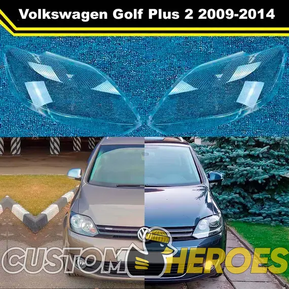 Высококачественные стекла фар из оптического поликарбоната с защитным УФ-лаком идеально подходят для замены оригинальных стекол фар на Volkswagen Golf Plus 2009-2014 2 поколение