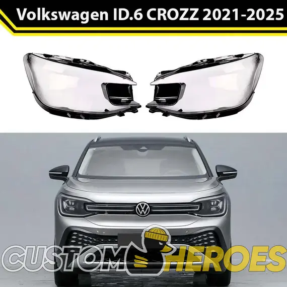 Высококачественные стекла фар из оптического поликарбоната с защитным УФ-лаком идеально подходят для замены оригинальных стекол фар на Volkswagen ID.6 CROZZ 2021-2025