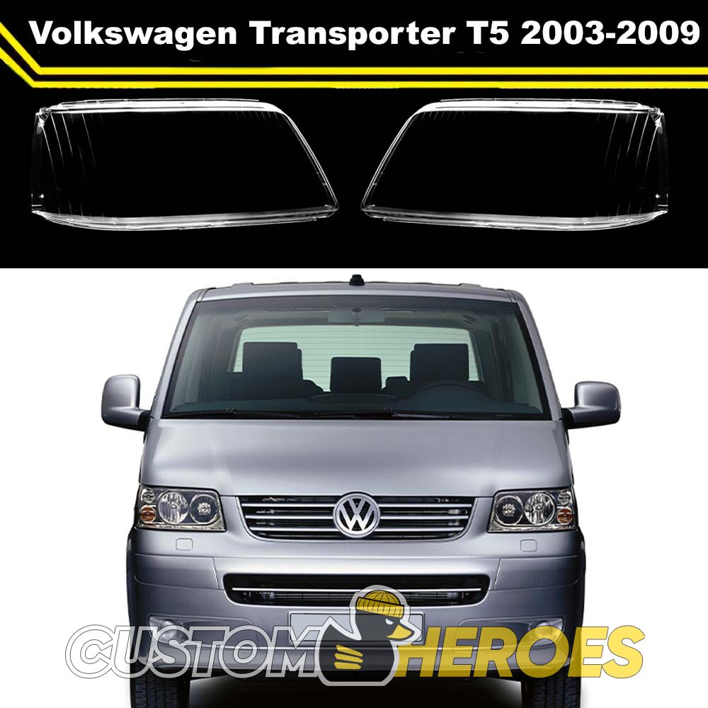 Высококачественные стекла фар из оптического поликарбоната с защитным УФ-лаком идеально подходят для замены оригинальных стекол фар на Volkswagen Transporter 2003-2009 T5