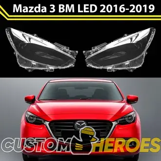 Стекла фар (пара) Mazda 3 BM рест LED 2016-2019